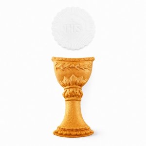 Cukrowa dekoracja na tort komunijny ZŁOTY KIELICH + HOSTIA